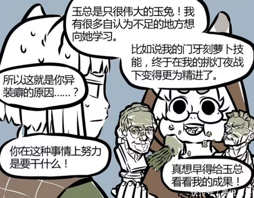 伯邑考将小玉视为偶像,很崇拜她。在伯邑考眼里,小玉就是伟大的玉兔,有很多需要他学习的地方。比如用门牙雕刻的技能,伯邑考在努力之下,也是有所精进。伯邑考也想早点给小玉看看他的成果,不过九月想不明白,为何他连这种事情都要努力。只能说优秀的玉兔,什么技能都想学习。